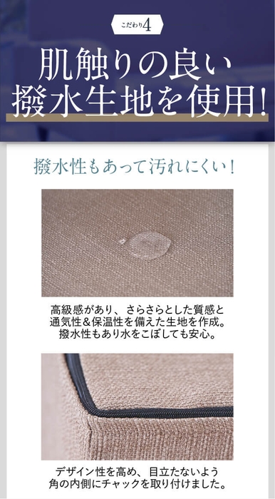 肌触りもよく、防水性のある撥水生地を使用しています。