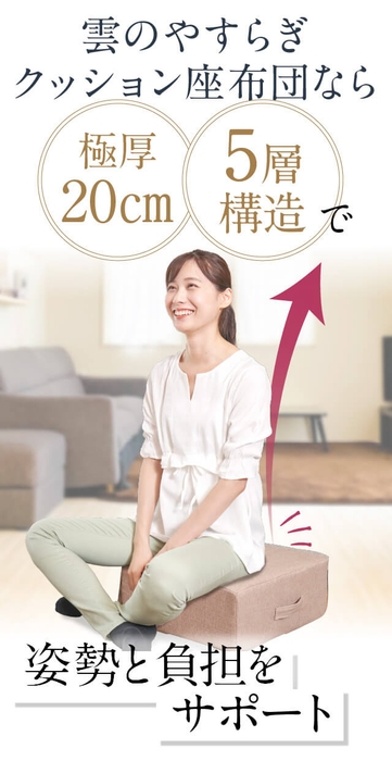 テレワークの腰痛対策におすすめ。座るだけで自然と姿勢が良くなる “雲のやすらぎ クッション座布団”が販売開始!