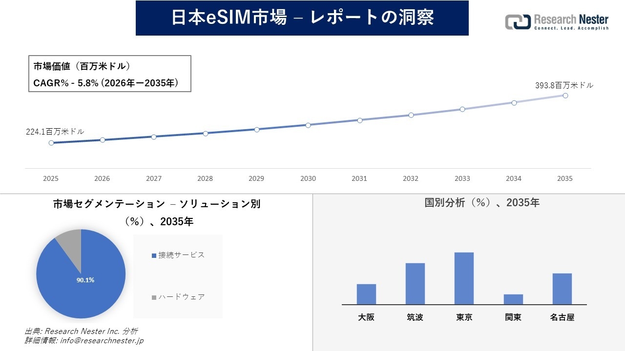 Research Nester Inc.(東京都台東区)は、「日本eSIM市場」に関する調査を実施し、2026 ― 2035年の間の予測期間を調査しています。