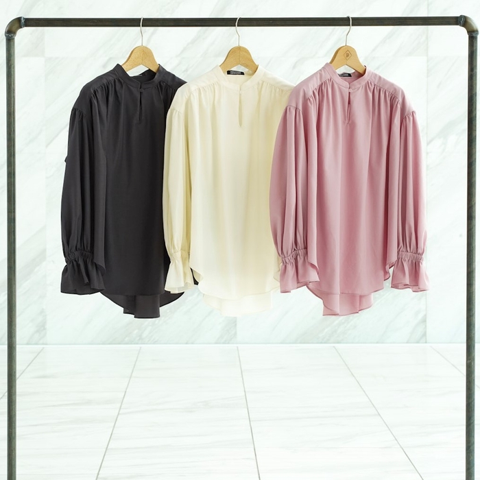 袖の程よいボリューム感、顔周りの抜け感、素材の軽やかさ、全てを網羅した逸品です。