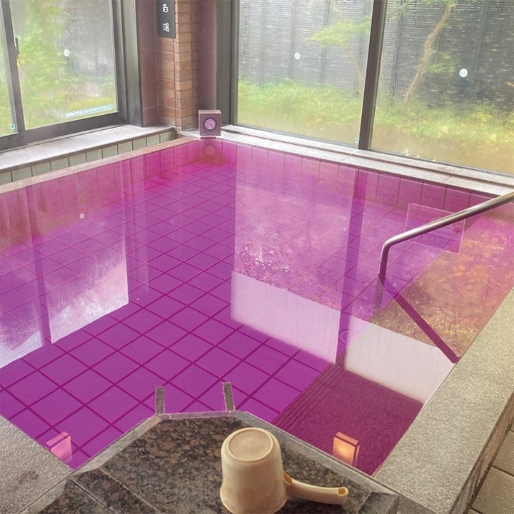 「岩下の新生姜の香り湯」は、こだわりの⽣姜成分がぎゅっと濃縮された「岩下の新⽣姜パウダー」とじっくり抽出した「しょうがエキス」をW配合。まるで岩下の新生姜の漬け液のようなピンクの湯色と生姜の香りが特徴的なお⾵呂で、“岩下の新生姜になった気分”をお楽しみいただけます。