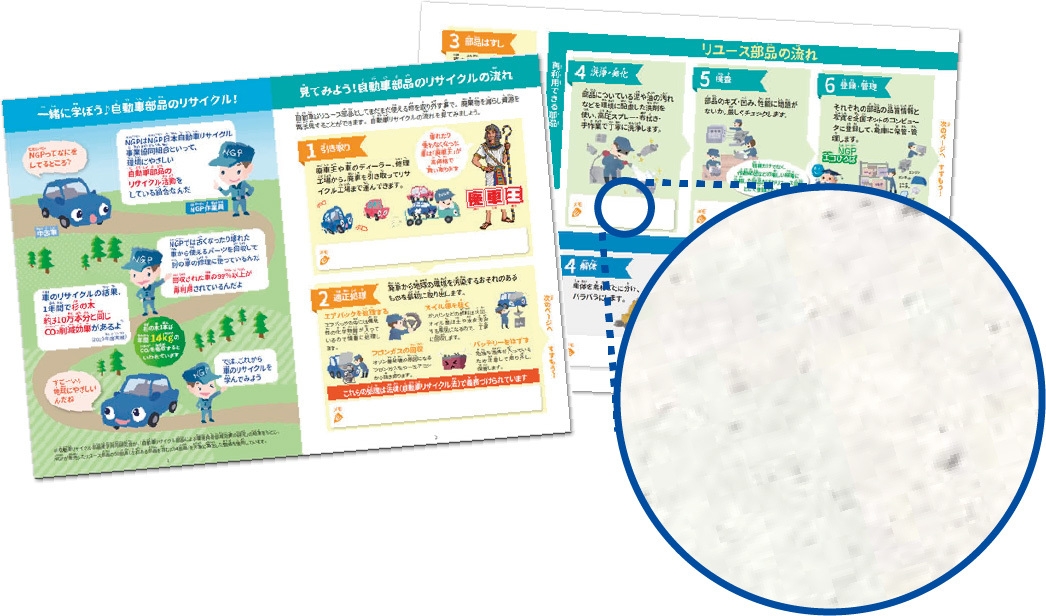 「NGPアップサイクルプロジェクト」は、廃車となった自動車に付属している取扱説明書を廃棄せずに回収することで有効な資源とし、子どもたちに3Rの大切さを自動車リサイクルの流れを通じて勉強してもらうための「環境教育ノート」を製作するプロジェクトです。