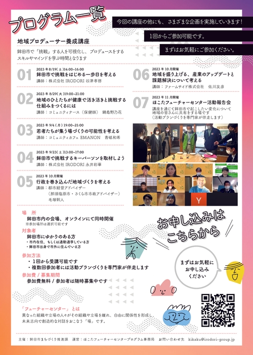 鉾田市で「挑戦」する人を可視化し、プロデュースするスキルやマインドを学ぶ時間となります。