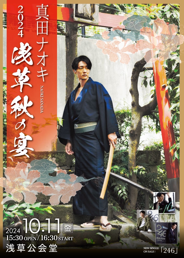演歌界イチのアニオタ・真田ナオキが6月16日(日)に放送された「行列のできる相談所」に出演。ドハマリした異世界アニメ「転スラ」、「リゼロ」を熱く語り話題を呼んでいる。そんな真田ナオキが10月11日(金)に、“2024浅草秋の宴”を浅草公会堂で開催することが決まり、着流し姿の新ビジュアルが公開された。鳥居の前で遠くを見つめ、これまでとは一味違ったクールなビジュアルに、ファンからは『いや、カッコ良すぎでしょ!』『楽しみすぎる!』といった熱いコメントが寄せられている。