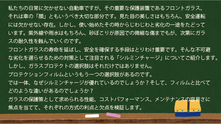 車のフロントガラスを強力保護!ガラスの耐用年数を伸ばす コーティング剤「シルミンチャージ」を発売