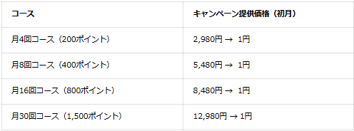 ・各コースに初月1円の料金表示がございますので、ご希望のプランをご選択の上ご購入ください。