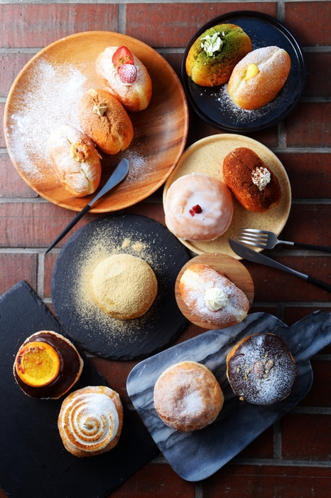 「MILK DO dore iku?」の生ドーナツは、北海道の雄大な大地がある十勝の小麦粉をメインに卵とバターをふんだんに使用した、しっとりなめらかな生地が特徴。北海道美深の牧場で育てた、保存料などを使っていない低温殺菌の牛乳は、コクが出て甘味があります。またクリームには北海道根釧地区の生乳を使用した濃厚な生クリームをベースに様々な味付けのクリームをご用意しております。また高温で一気に揚げることで、外はカリッと揚がり、中身は生クリームのようなとろける口溶けになるよう仕上げています。味は自家製カスタード、ショコラナッツ、ミックスシュガー、季節商品など約9種です。