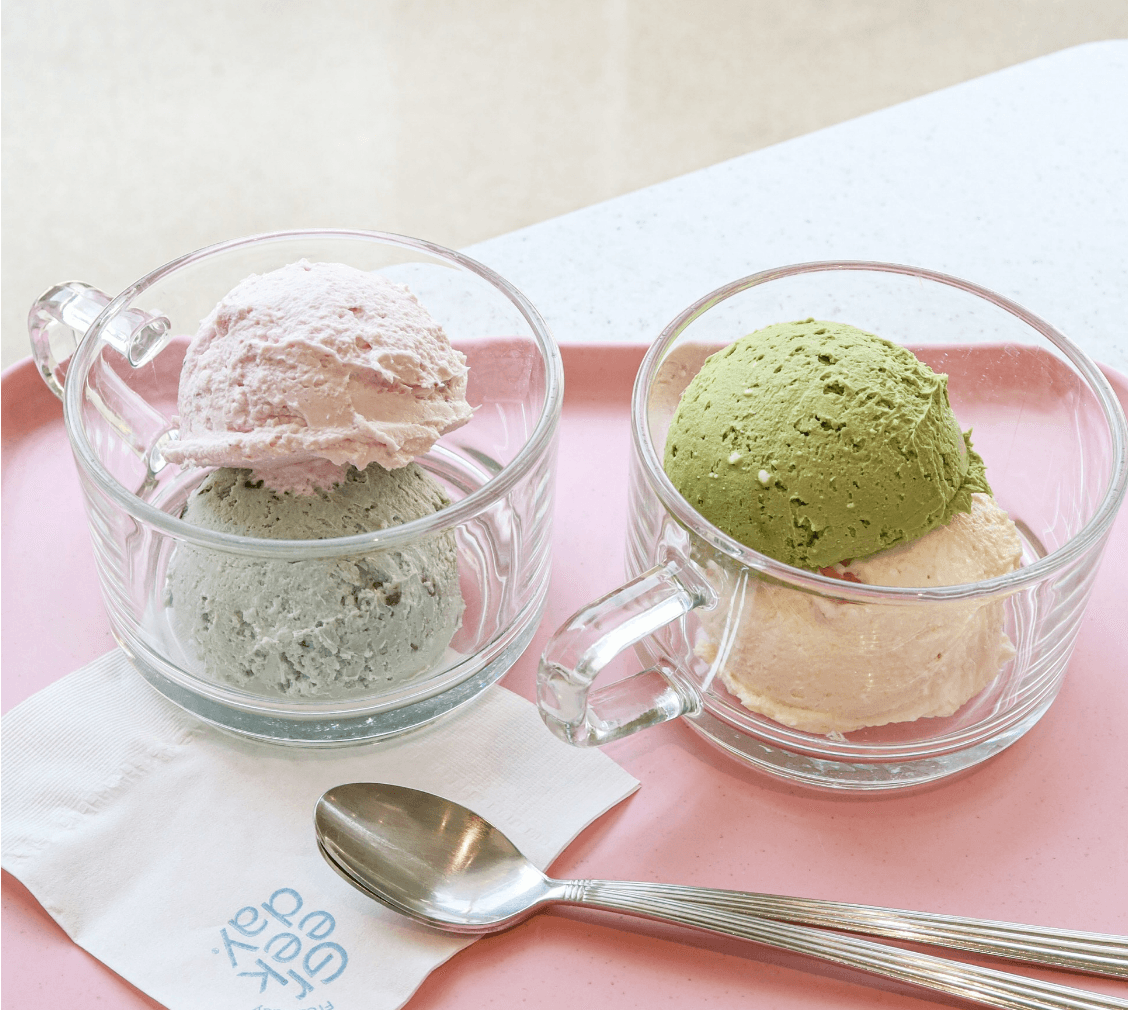 また、グリークデイの1号店であるソウル・梨大本店ではお好みのトッピングを自由に選べるほか、季節ごとの様々なシーズンメニューも提供しています。