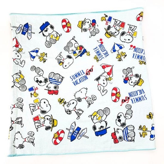 スヌーピーの夏らしいデザインが人気のバスタオルの紹介でした。これからの時期にピッタリなデザインで、肌ざわりも抜群です。新しいバスタオルにチェンジしてみませんか?