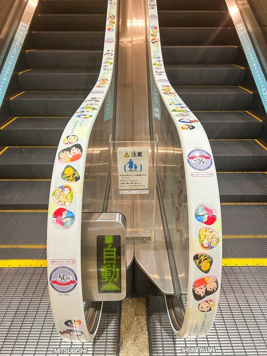 掲出するのは、エスカレーターの手すりをウレタンシートで覆う「UDベルト」(株式会社UDエスカレーター提供)です。従来のポスターや映像広告がキャラクターを“見る”存在として届けてきたのに対し、UDベルトは、利用者が自然に手を添える場所にキャラクターを配置することで、まるでキャラクターが寄り添い、支えてくれるかのような体験を生み出します。さらに、このベルトは転倒リスクを軽減する機能を持ち、キャラクターたちは利用者の安全を守る役割も果たしています。