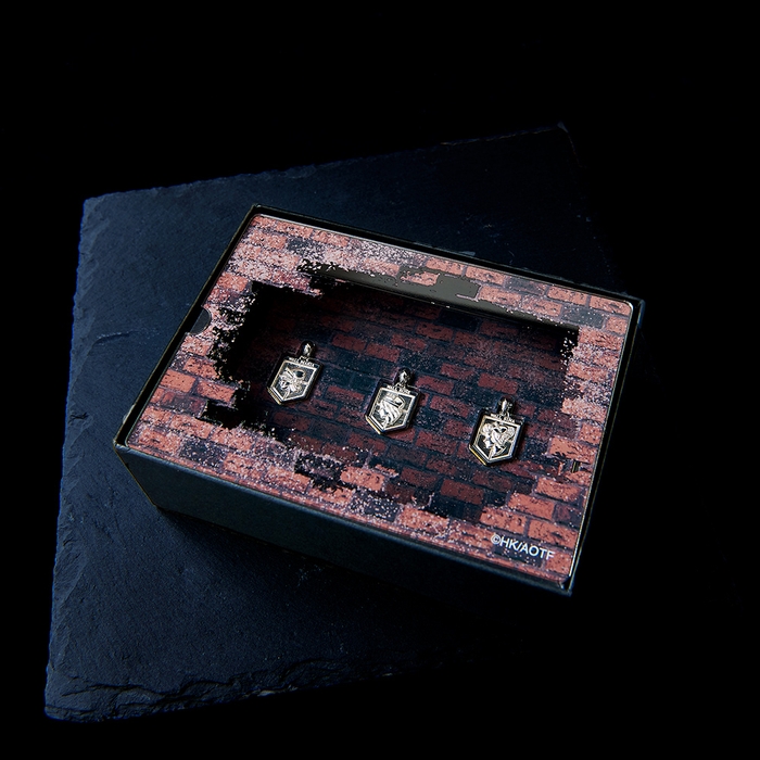 TVアニメ「進撃の巨人」に登場するウォール・マリア、ウォール・ローゼ、ウォール・シーナを再現したシルバーネックレスの全種コンプリートBOX付きセットです。
