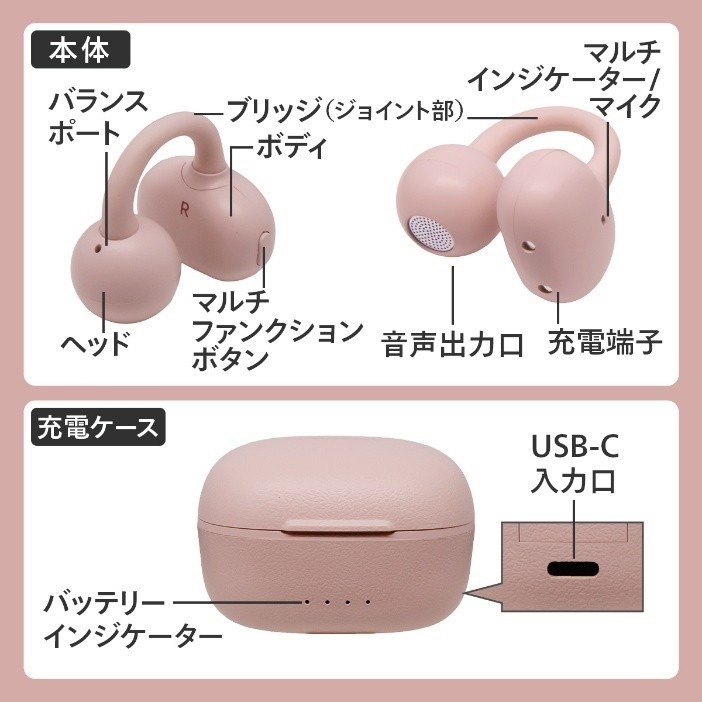 ファッションにも自然に馴染む、洗練されたオープンイヤホンです。