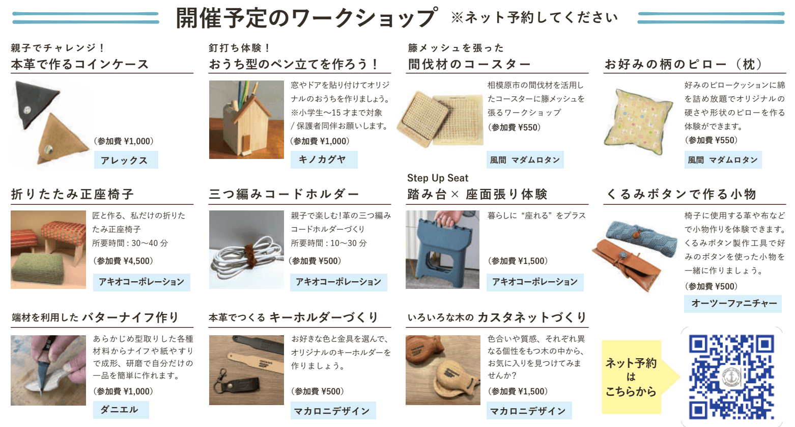 小さなお子様から大人まで楽しめるワークショップが盛りだくさんです