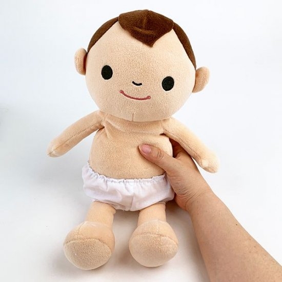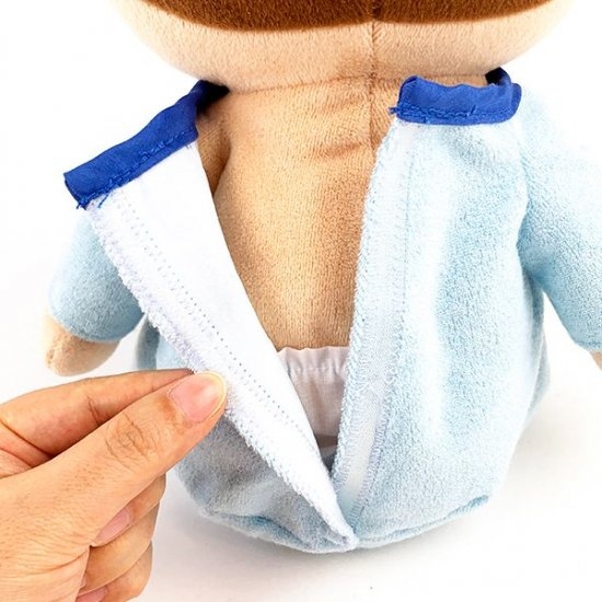 赤ちゃんが着用しているブルーの服は、実は着脱可能。服を脱がせたい時は、マジックテープをはがせばOK!服の着脱も楽々です♪