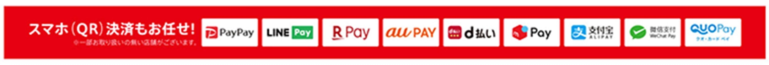 スマホアプリのQRコード決済をはじめ、便利なキャッシュレス決済もご利用可能です!※一部取り扱いのない店舗がございます。