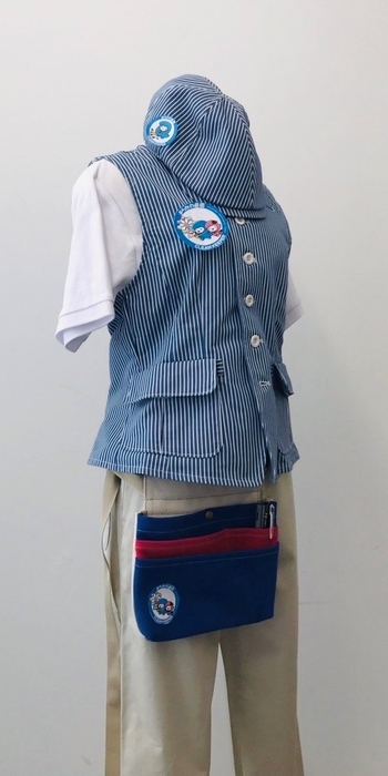 「子どもに憧れられる清掃員、働きたくなる制服」をコンセプトに、さわやかで鮮やかなブルーを基調とした清潔感のあるデザイン。全体にポップさを意識し、胸にワッペン、背中にバックプリントをあしらい、一目で清掃スタッフとわかるよう視認性を高めた。また、ジェンダー平等の観点から世代や性別に関わらず着用できるデザインで統一。作業バッグは、荒川区シンボルキャラクター「あら坊」「あらみぃ」のカラーとし、ブルーとピンクを基調に清掃用具が入るようポケットを多用。パンフレット等が入る機能性を重視した。