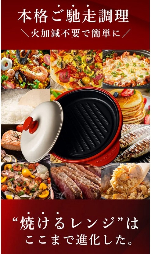 独特の香ばしさと風味、美しい焼き色のついたステーキや焼き魚を電子レンジ1つで調理可能。さらに煮物や炊飯まで可能な多機能性が注目を集めています。