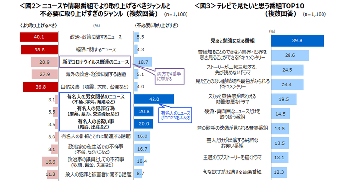 「有名人の男女関係のニュースは取り上げすぎ」が42% 見たいのは「見ると勉強になる番組」
