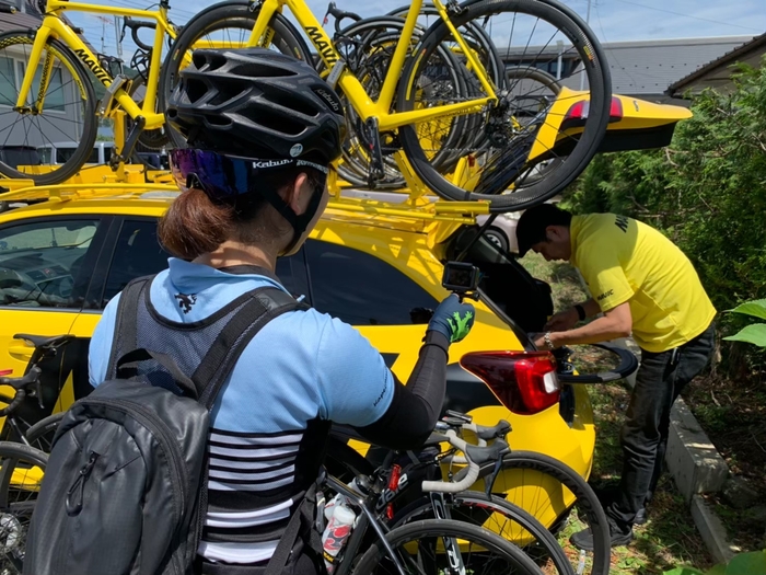 富士山一周サイクリングを自力のみで走ることが不安。そんな方でも大丈夫!コース上には、この日限定でサポートカーが出動します!救護車両、メカニックカー、サポートライダーなどが巡回。最後尾には回収車が走っているので安心して富士山一周サイクリング(富士いち)に挑めます!