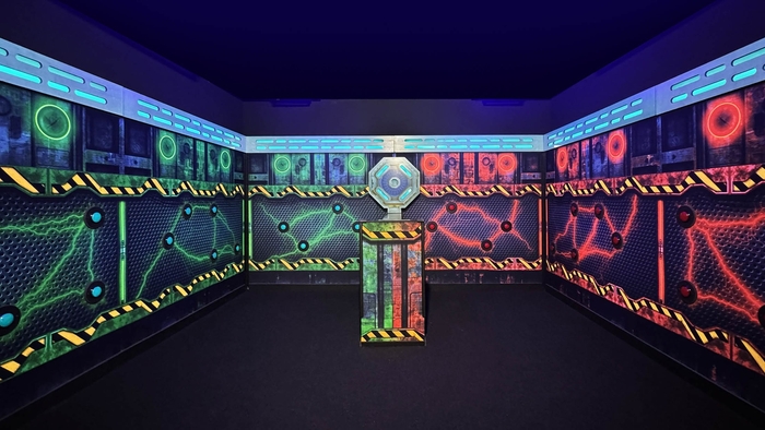 屋内型のアトラクションで、雨や夏の日差しを気にせずお楽しみいただけます。最高得点を目指して、全身を使って光るボタンを追いかけ、爽快感を味わっていただきたいです。