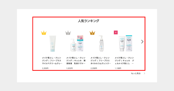 サイト内で人気のある商品をランキング形式で提示することで、ユーザーの購買意欲を高めてあわせ買いのきっかけ作りに貢献し、ひいてはCVR向上が期待できます。