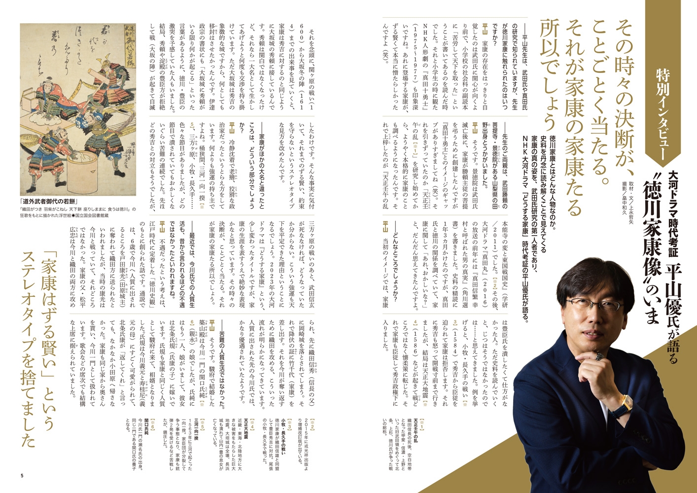 3つ目の特徴は、大河ドラマ「どうする家康」で時代考証を担当されている平山優先生のインタビュー記事「“徳川家康像”のいま」が掲載されている点です。近年の研究で、家康のイメージはどのように変わったのか。最新の研究成果を踏まえて語っていただきました。