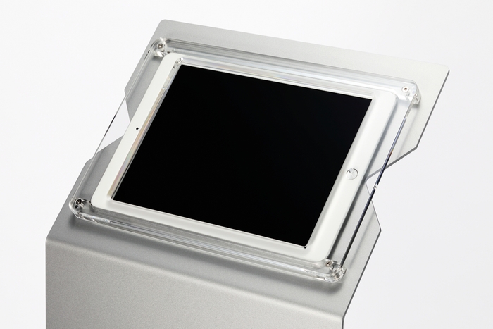 iPad盗難防止スタンド「T1」は無人受付システムに最適なiPad盗難防止スタンドです。