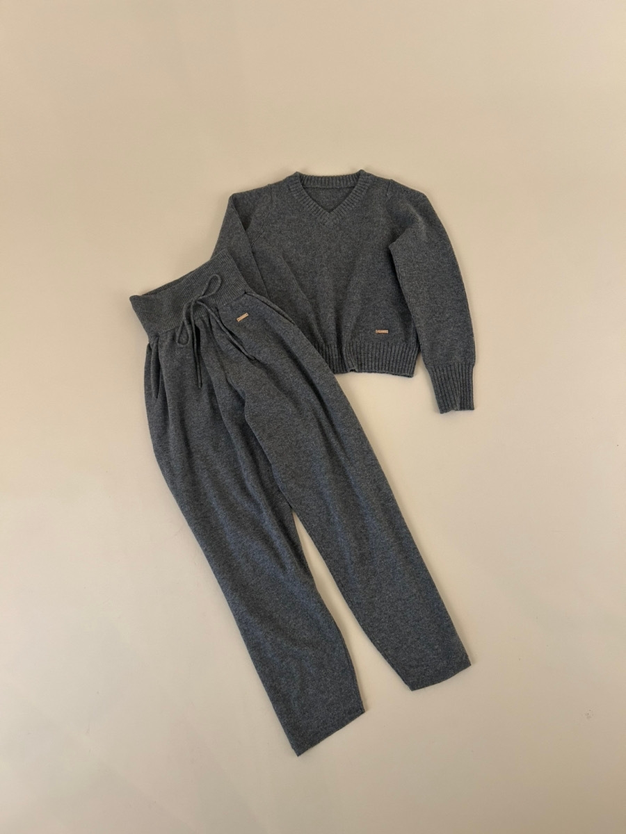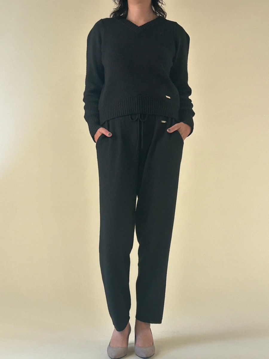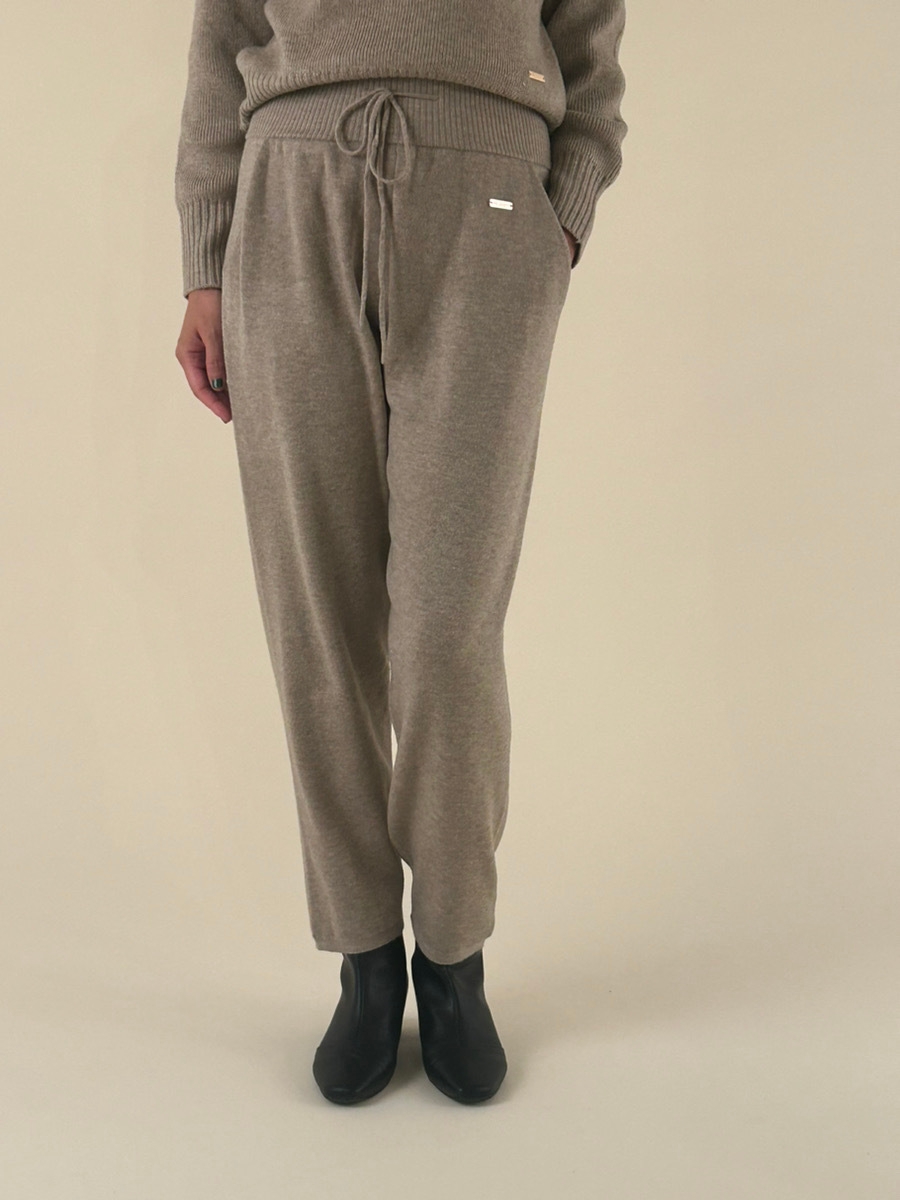 カシミアタッチで滑らかな肌触りのリサイクルポリエステル糸を採用したガードル内蔵テーパードパンツ。