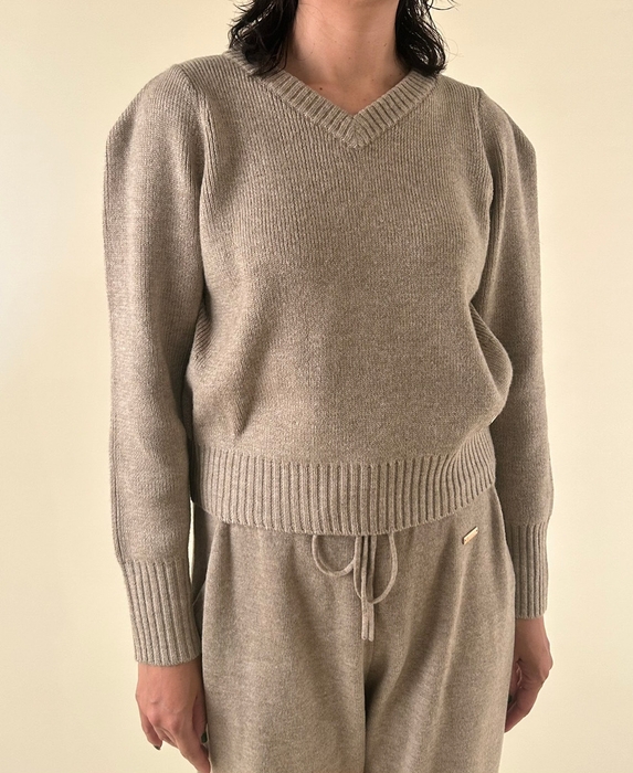 トレンドのパワーショルダーがポイントのショート丈プルオーバー。