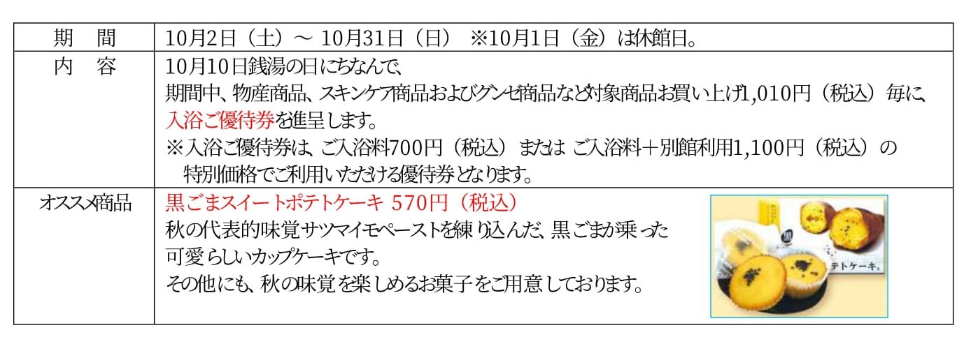 つかしん天然温泉「湯の華廊(R)」 秋のお買いものフェア開催