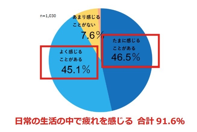 9割以上の方が日常の生活の中で疲れを感じると回答