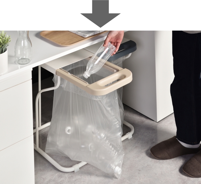 filleteリサイクルスタンドは取っ手をスライドさせてゴミをポイッ!と捨てられます。
