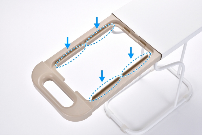 ※勢いよく引き出さないでください。取っ手付きスライダーが天板から抜けて落下する恐れがあります。