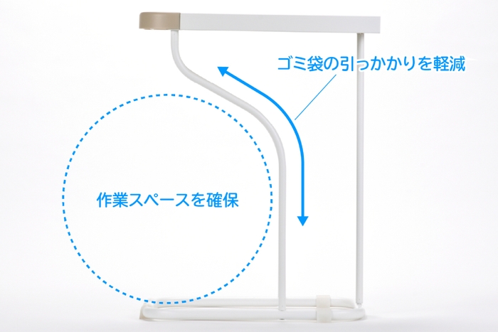 サイドフレームは曲線形状になっており、作業スペースを確保しゴミ袋の交換もスムーズです。また、スライド時にゴミ袋が引っかかりにくくなっています。