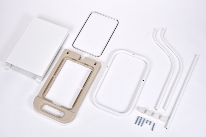 本体は「ホワイト」の1色のみです。手が触れる部分に配慮した柔らかな形状の取っ手は「ライトベージュ」「グレー」「ピンクベージュ」の3色からお選びいただけます。