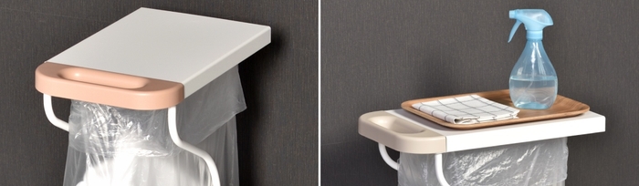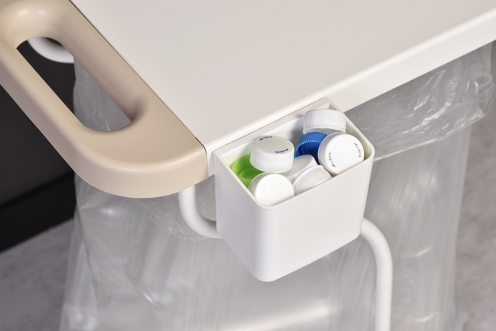飲料用キャップやストック用のゴミ袋・小物等の置き場として天板を有効活用できます。