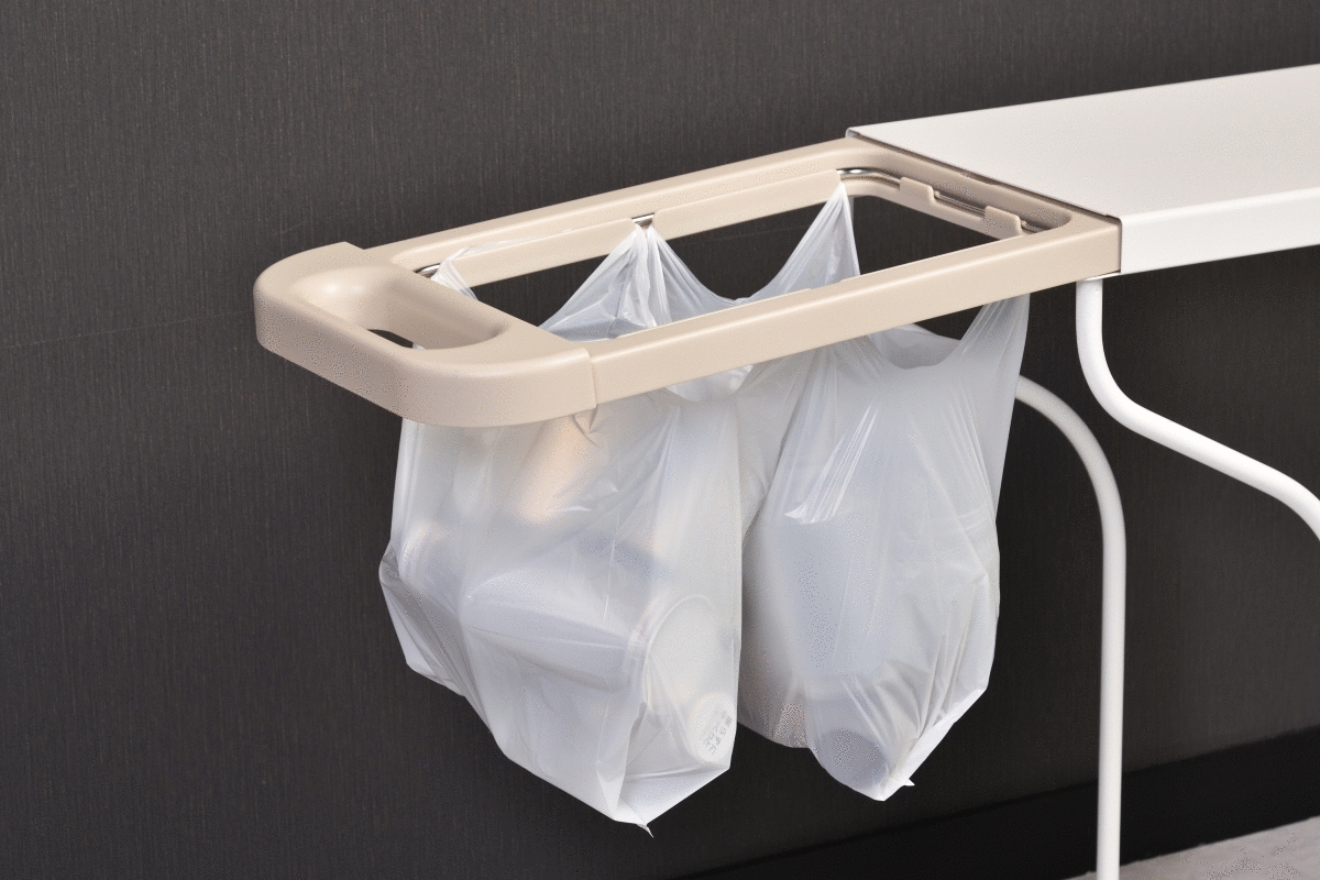 取っ手付きスライダー内側にある4箇所の突起を使用すると、小さめのレジ袋が引っ掛けられます。(2枚まで)