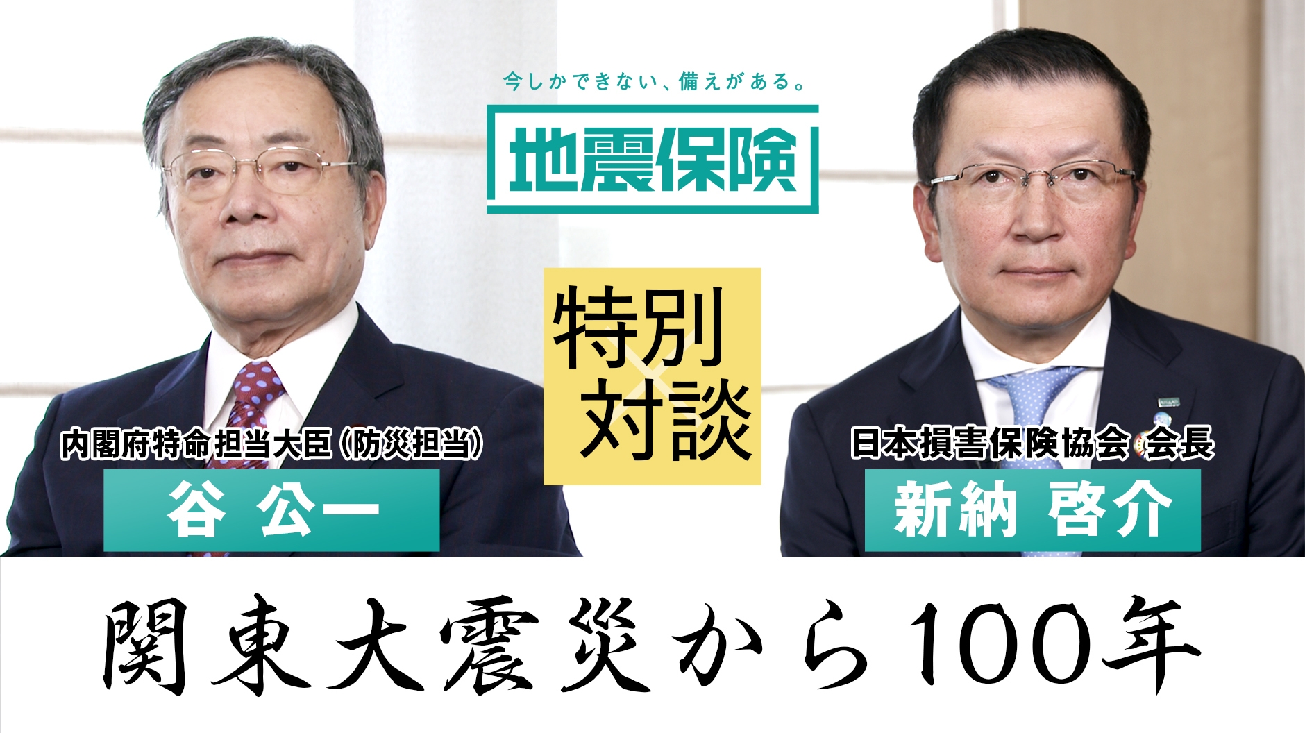 一般社団法人 日本損害保険協会(会長:新納 啓介)は、谷公一 防災担当大臣と新納日本損害保険協会会長による対談の様子を動画で公開しました。