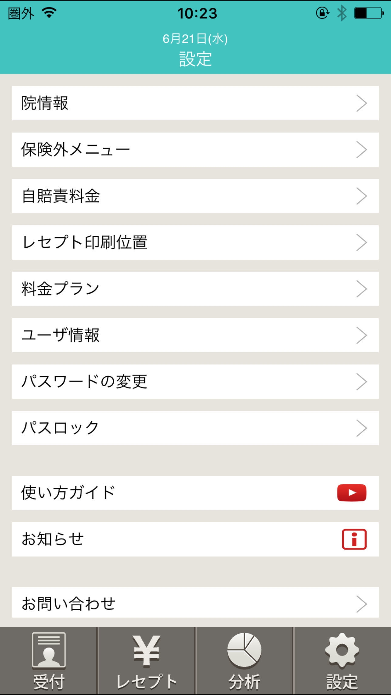 保険外料金メニューの登録や、保険適用の施術内容を入力すれば、治療費が表示され領収書の発行も可能です。