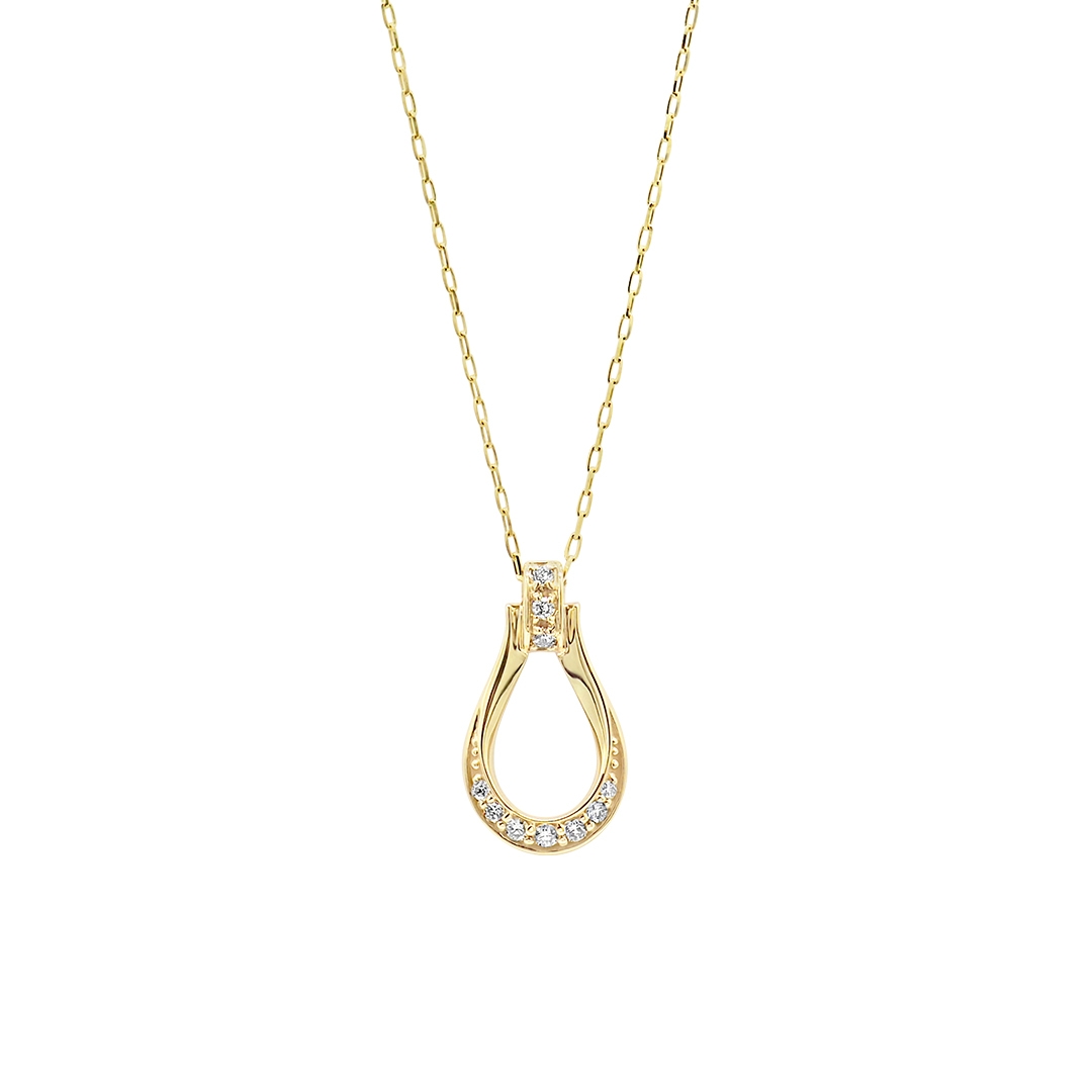 「幸運をもたらす」といわれるラッキーモチーフ、ホースシュー(馬蹄)デザインのダイヤモンドネックレス。縦長の洗練されたフォルムは地金とダイヤモンドのバランスがよく、王道のホースシューがぐっとこなれた印象に。エレガントなコーディネートにも、カジュアルにも着けられる万能モチーフは、世代を問わず長くご愛用いただけます。ジェンダーレスに楽しめるデザインで、大切な家族やパートナーとのシェアジュエリーとしてもおすすめ。