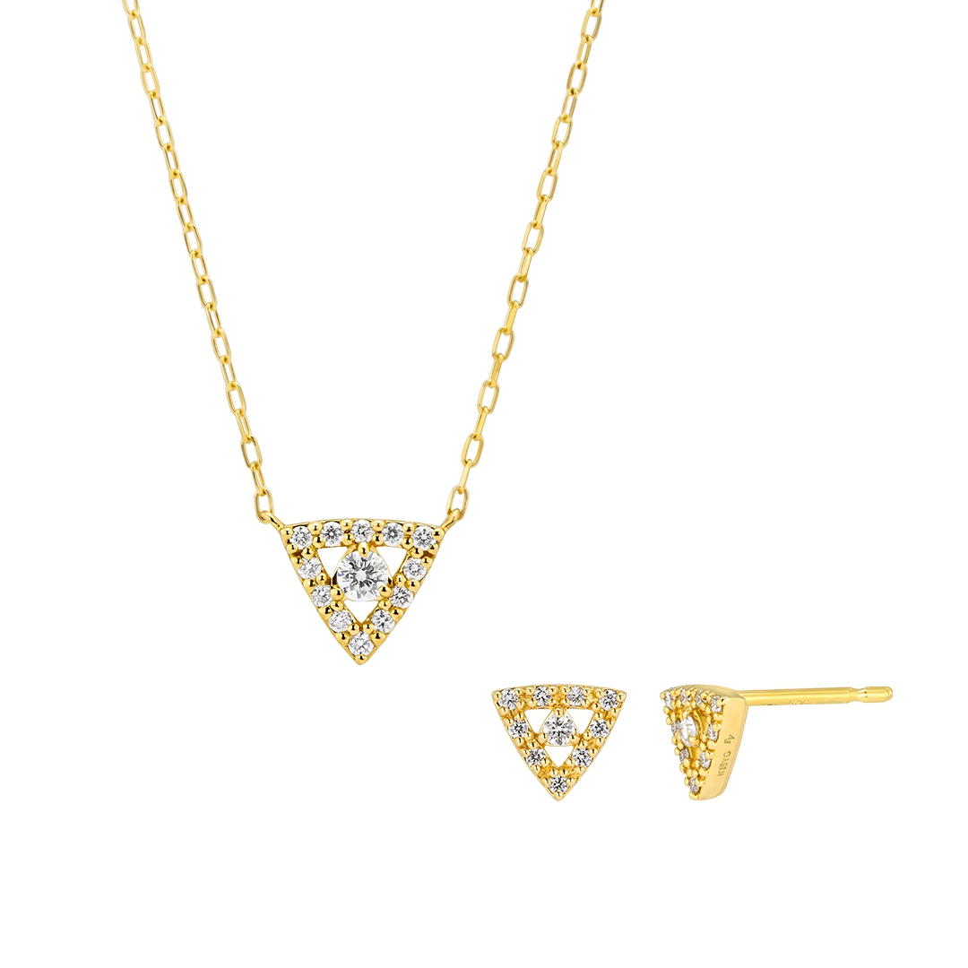 エッジの効いたフォルムにシックな雰囲気が漂う、トライアングルモチーフのジュエリー。ほのかに丸みをつけたラインでシャープになりすぎず、やわらかさを残しています。下向きのトライアングルは自分を掘り下げ、潜在能力を引き出してくれるといわれるモチーフ。「フラッグ型」とも呼ばれ、自分の旗を掲げる、自分らしくありたいという意味も。幅広いシーンで着けやすい程よいサイズ感で、オフィスでもプライベートでも活躍するアイテムです。“自分らしさを大切に”と想いを込めたプレゼントや、そうありたいと願う自分のお守りジュエリーとしてもおすすめ。