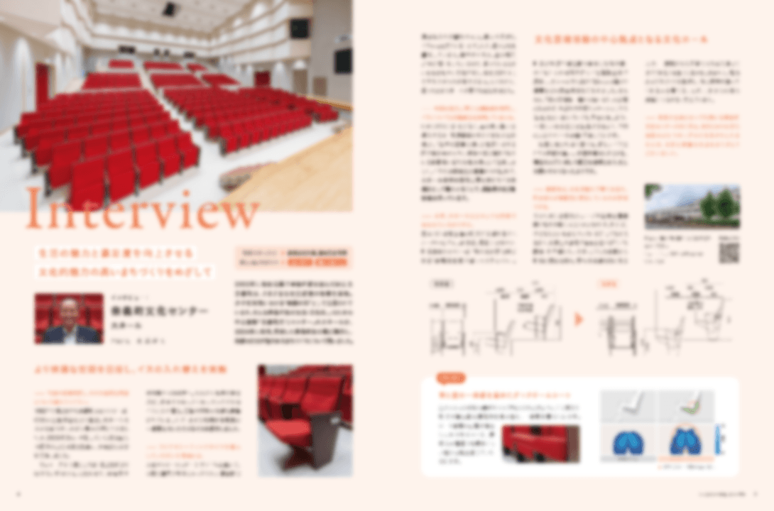 日本全国には、2,000を超える劇場やホールが存在し「文化・芸術を発信する」場として日々多くの利用者に親しまれています。1990年代に全国に多く建設された劇場は開館から35年を超えて、施設・イスともにリニューアルの時期を迎えています。全国の劇場ホールでは、収容人数1,000席未満の施設が最も多くを占めています。本冊子では、2020年~2025年にかけてリニューアルが実施された、300~1,000席の規模、全10施設の事例をご紹介することで、施設改修をご検討中のお客様のヒントになればと考えております。「劇場と連携した、心豊かでにぎわいのあるまちづくり」のために、これからのホールにできることをご提案いたします。
