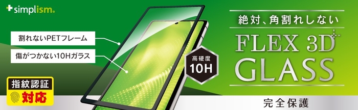 PETフレーム+ガラスの複合素材で、ディスプレイをフルカバーする絶対角割れしない究極の立体成型最強プロテクターです。強化ガラスで画面の広範囲を保護し、端末本体の形状に沿った立体成型のPETフレームが周りを覆うことで、角からの落下や衝撃で起こる「角割れ」を防ぎます。