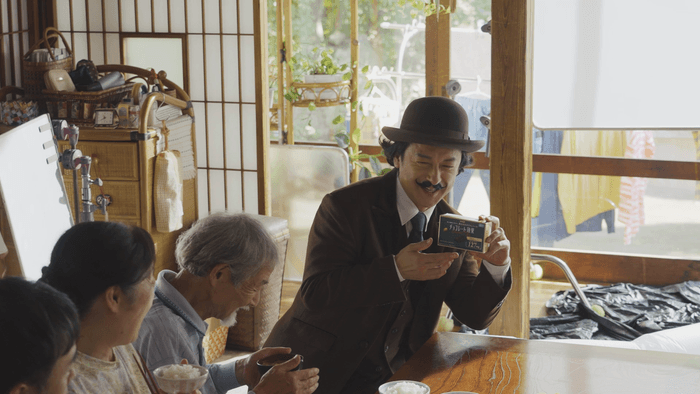 舞台は、とある家族の食卓。家族の一員かのように現れたチョコ先生は、チョコレート効果の魅力を力説し始めます。チョコ先生の熱弁に聞き入る家族は、気が付けばチョコ先生の存在をすんなり受け入れている様子。見知らぬ人が食卓にいることにツッコミを入れつづける子どもを尻目に、最後は家族と一緒においしくごはんを頬張るチョコ先生でした。