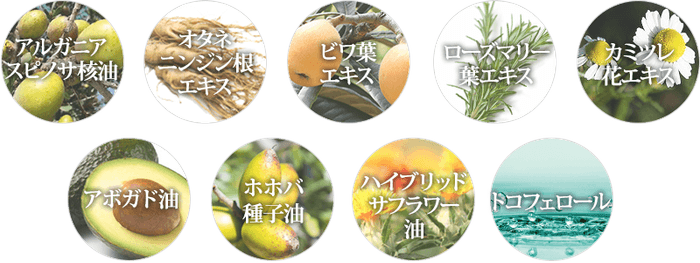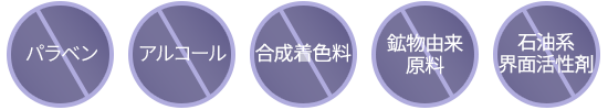 肌への刺激の原因となる、パラベン、アルコール、合成着色料、鉱物由来原料、石油系界面活性剤は不使用。