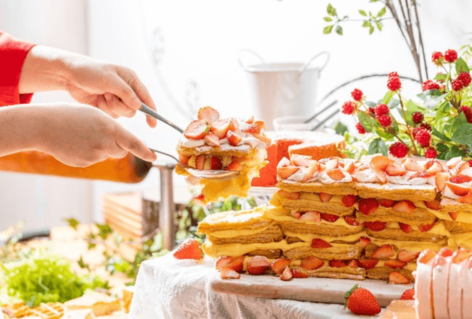 ここは五感すべてで、いちごを味わうスイーツビュッフェ。まるでティーパーティーみたいに愉しめる、かわいくっておいしいスイーツたちは心もお腹も幸せにしてくれる。いちごBonBonBERRYだからこそできる、いちごを主役にしたたくさんのおいしさで、あなたにハッピーを届けます。いちごの「おいしい」でいっぱいの幸せな日になりますように。もっと「いちご」が好きになる。
