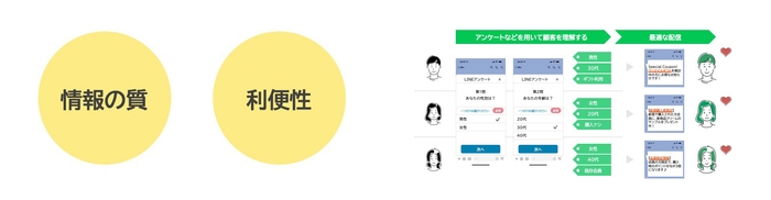 「情報の質」とはユーザーが求める情報を的確に把握し、それに合わせた最適な配信を行うこと。そして「利便性」とは、「会員証」や「予約」、「今使えるクーポン」などの便利機能を提供することで、顧客体験を向上させ、ロイヤルティを高めることだと述べました。