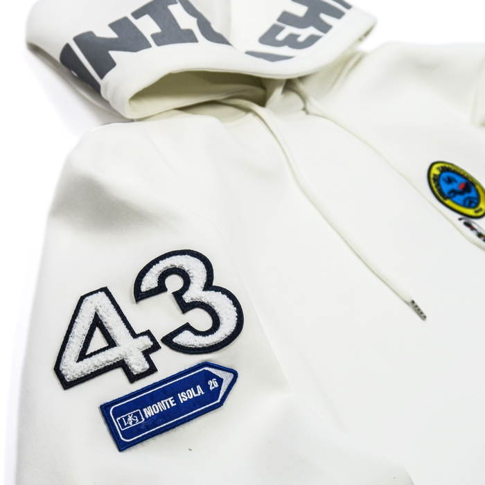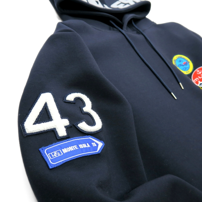 フード部分にはヨットのイラストが入ったmutaロゴがプリントされています。
