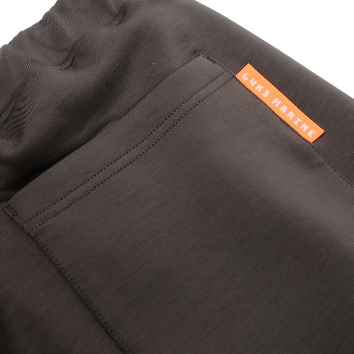 ウエットスーツのような柔軟性を備えたボンディング素材を使用し、海のイメージを残しつつ、カジュアルすぎない大人リッチ感ある普段着スタイルを提案。
