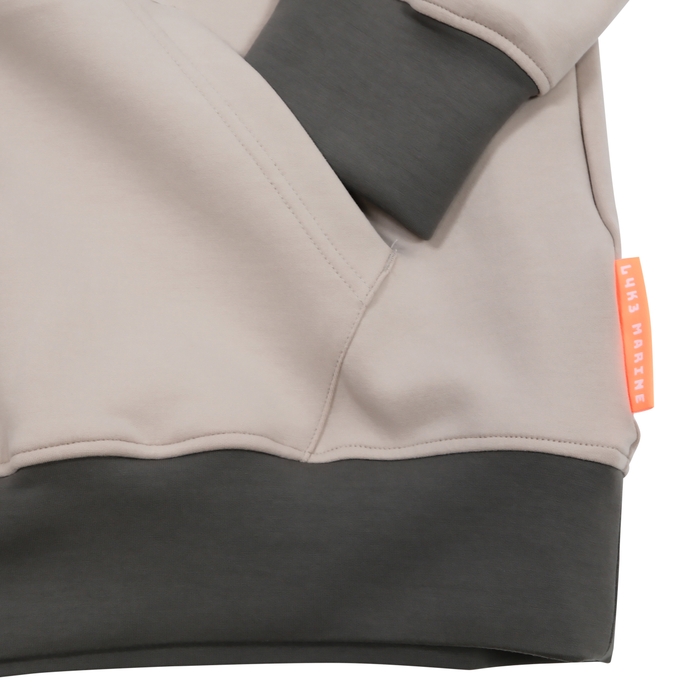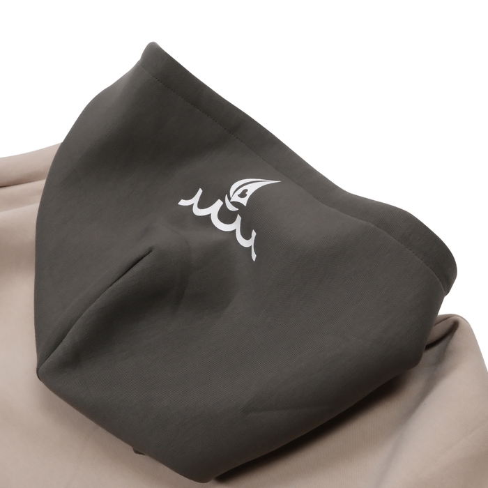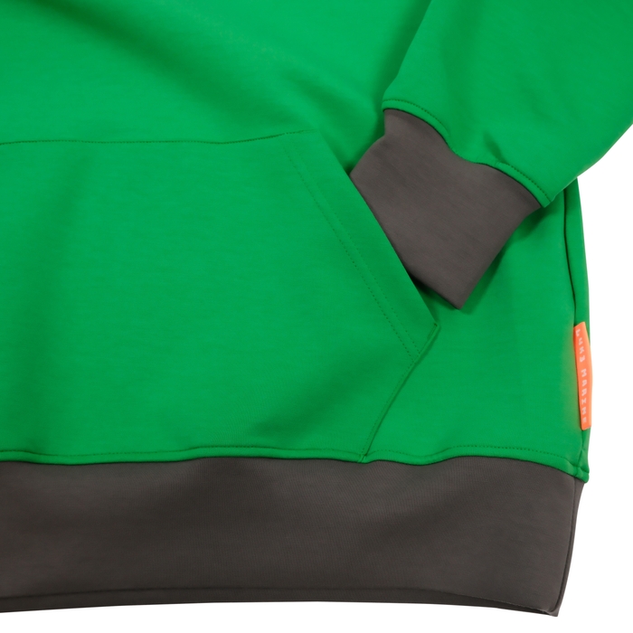 落ち着いたグレーを、フードやリブ部分に使用することで、グリーンとのコントラストも存在感を一段とUP致します。